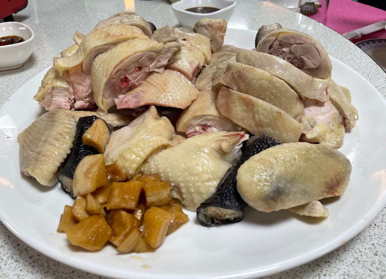 白斬雞 沒什麼味道有點柴 半隻450元小貴 今天吃裡面還微微有冰的感覺 ? …