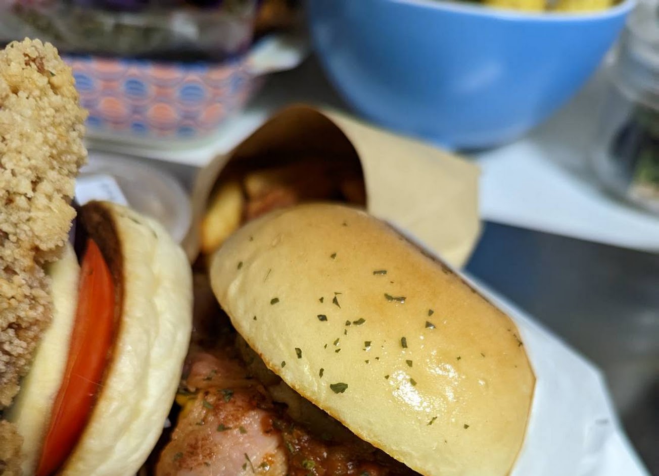 漢堡真的有大顆到 ,很給力, 花生醬配比來說醬算走偏稠的路線(不是自己調過的感覺) 機排炸的是有顆粒外皮的口感, 個人覺得中矩, 整體調味來說下次換看看別的