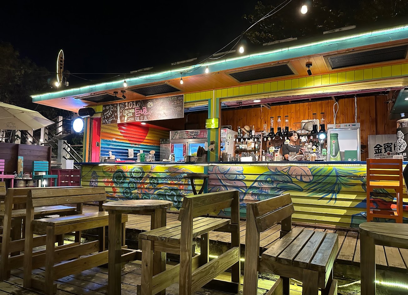 可惜的是,炸鍋竟然壞了,無法點炸物。但這一不幸竟成了我們的幸運,因此我們決定到墾丁大街上買了各種美味的酒菜,讓我們的選擇更加豐富多樣。真的超級超級讚啦!在墾丁的夜晚,這樣的體驗實在是讓人回味無窮,簡直發財嘍!