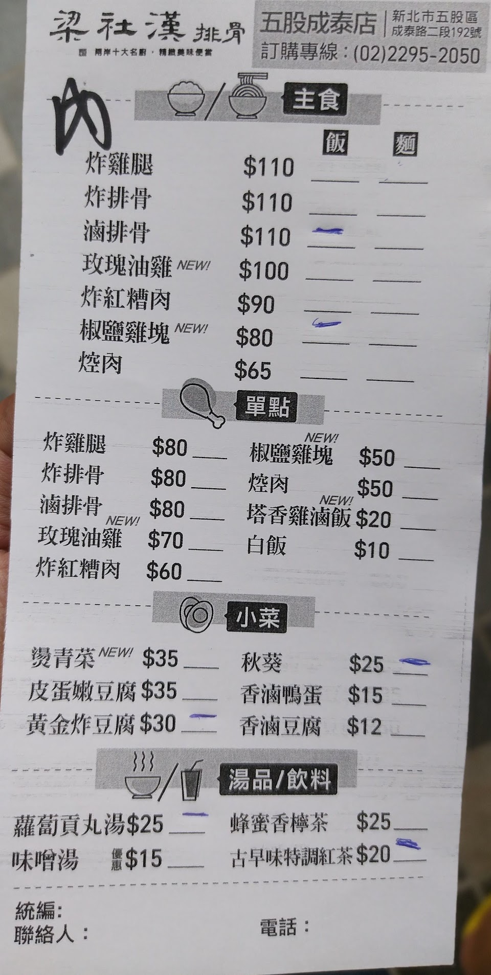 2024最新在地推薦餐廳的菜單_梁社漢排骨-五股成泰店的菜單、圖片