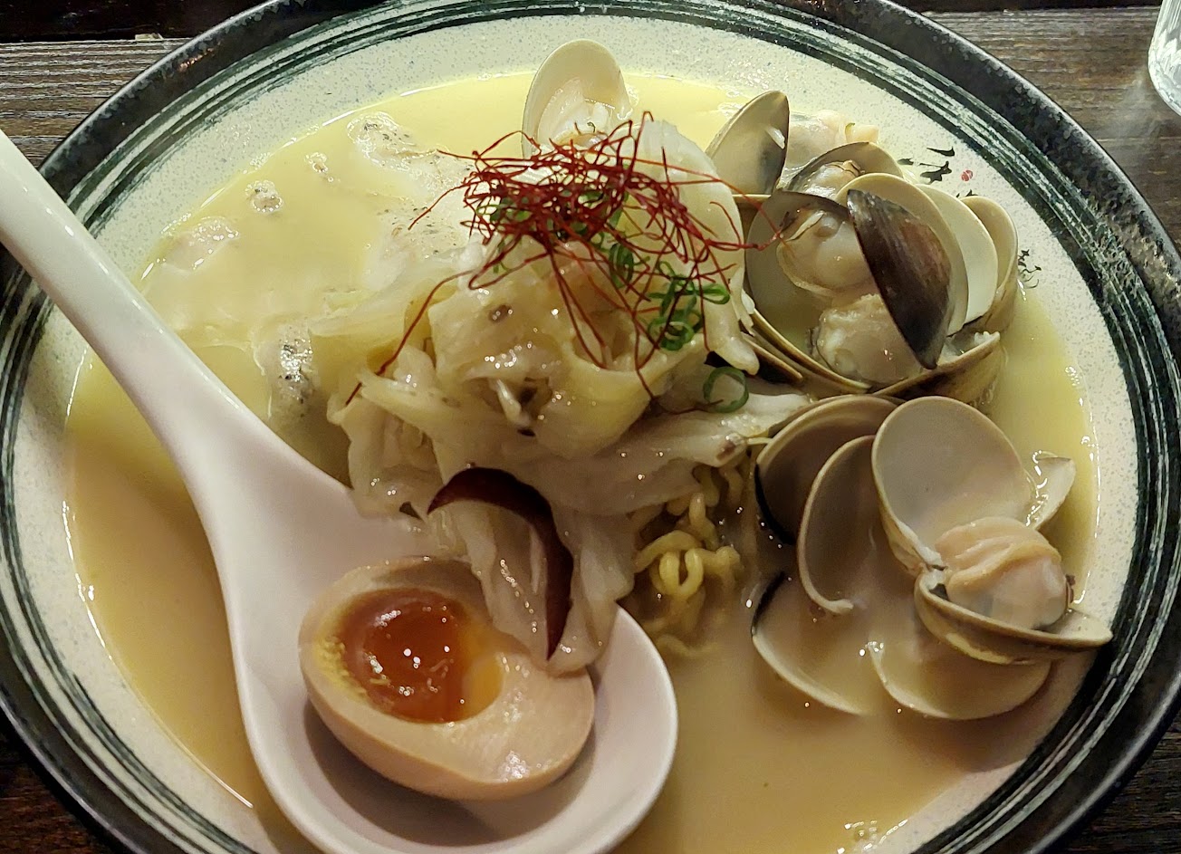 忘記是四訪還五訪了,距離上次一年有了吧 這次沒有選經典的雞白湯 而是隱藏菜單的蒜香奶油蛤蜊麵(麵條選擇偏硬)
