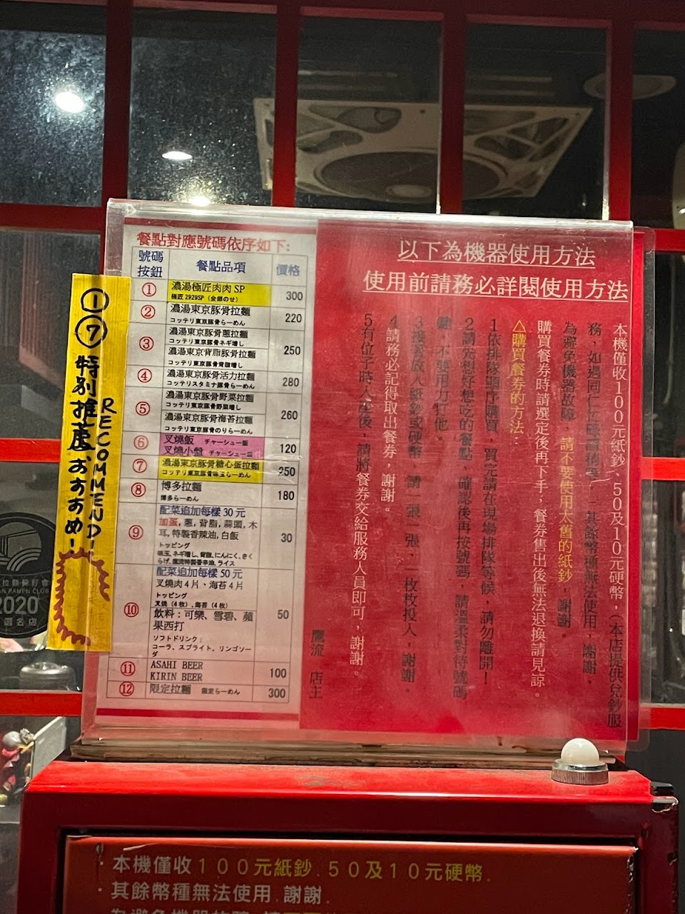 門口的拉麵購票機器沒有全部的菜單,要加點叉燒飯需要另外告知