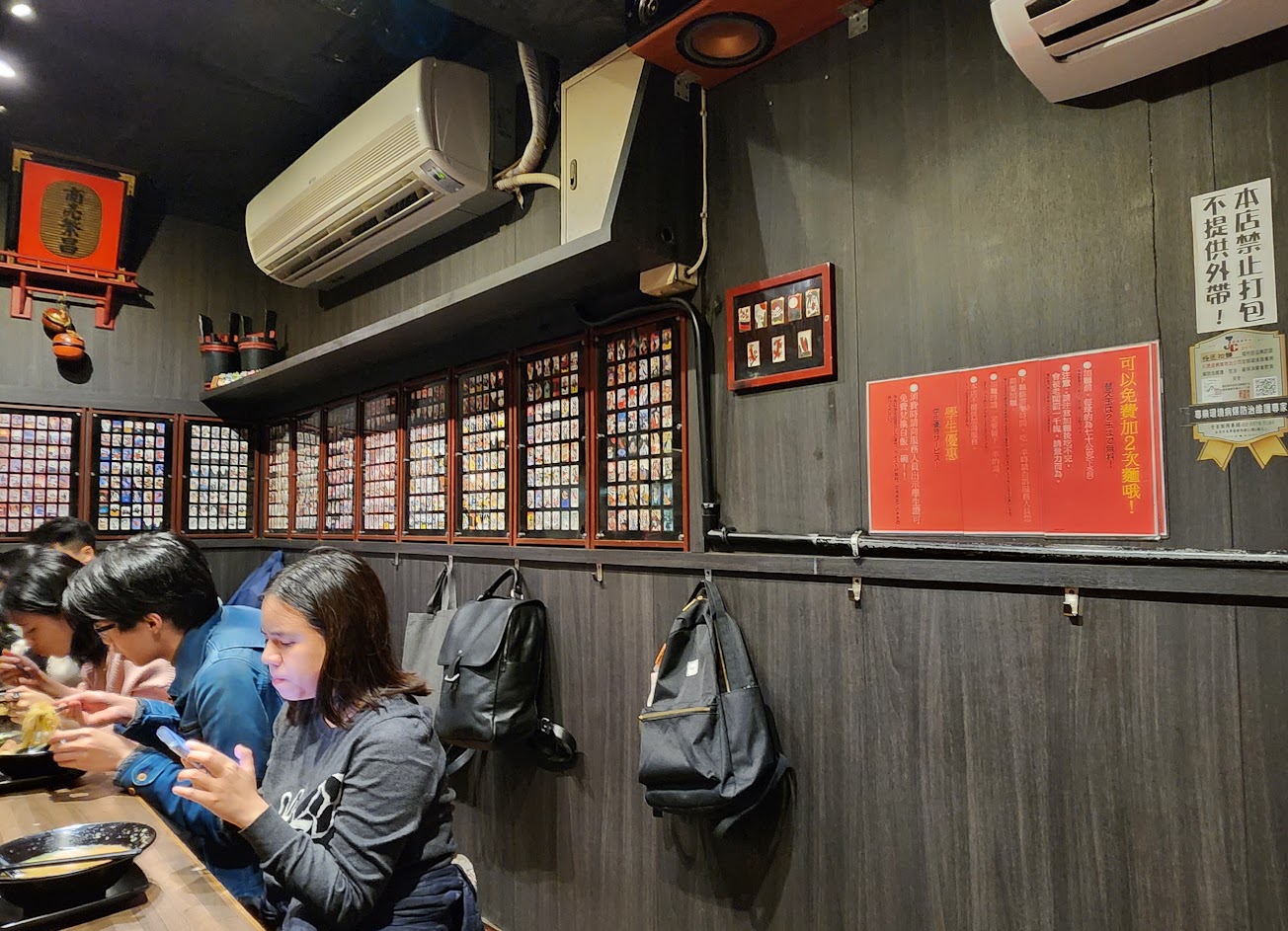 座位不多,大多要排隊,店內很有日本的氛圍,牆上都是卡牌,音樂主要是動漫歌曲,例如鬼滅、進擊的巨人都有聽到