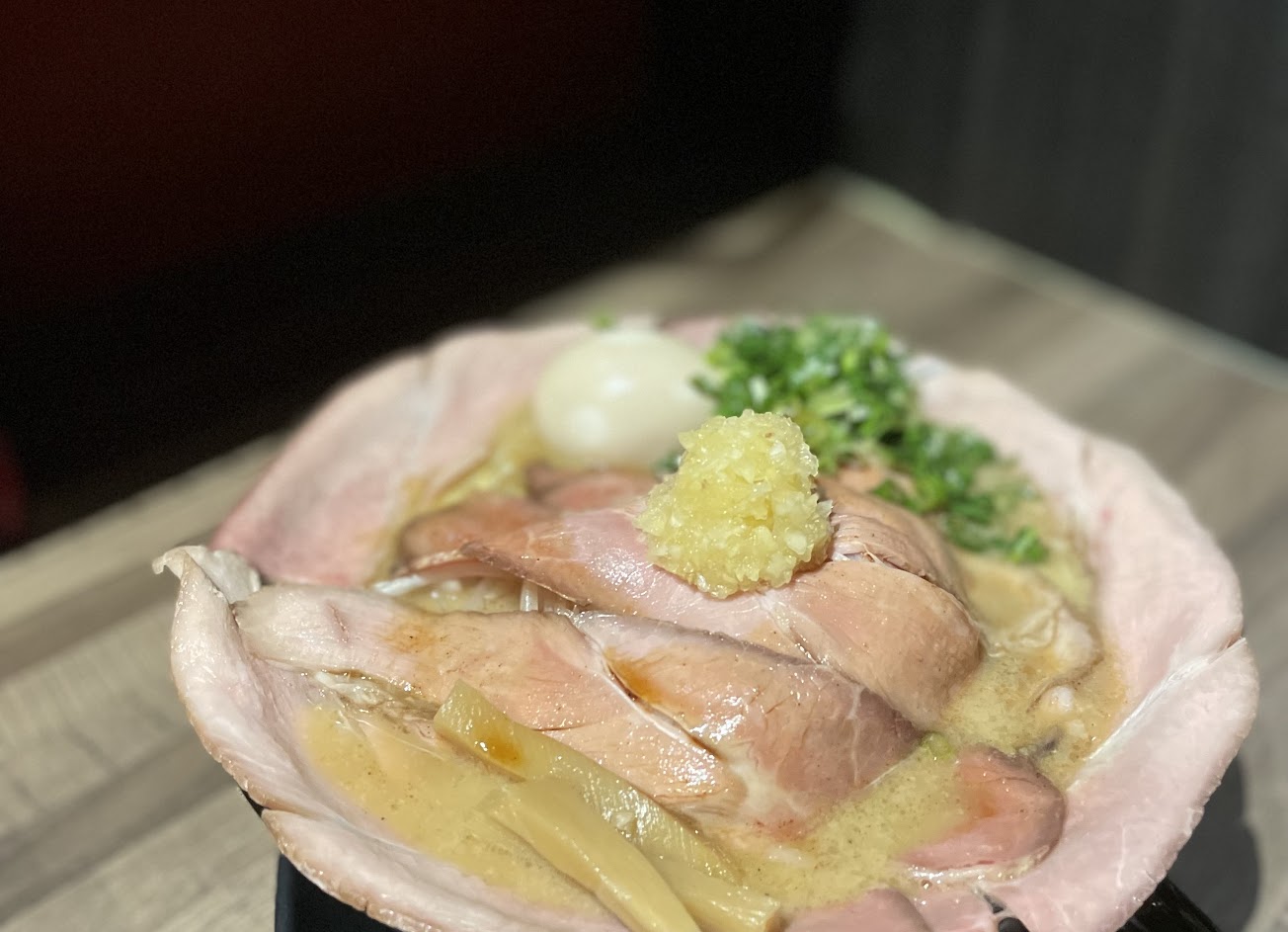 濃厚的豚骨湯頭想必是每一位來用餐的第一印象,然而漂浮其上的脊背肉油花,卻意外地讓口感變得溫順不死鹹(普遍臺灣人仍不易接受,或許是沒有吃麵喝水的習慣,容易堆積過多的油膩感)。