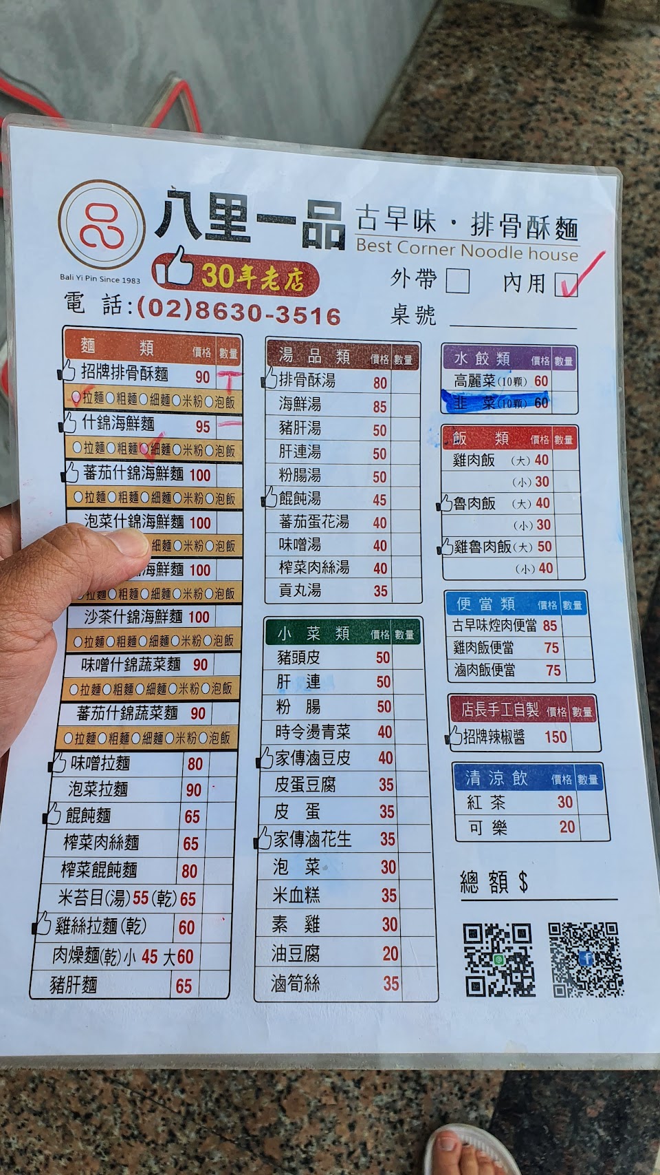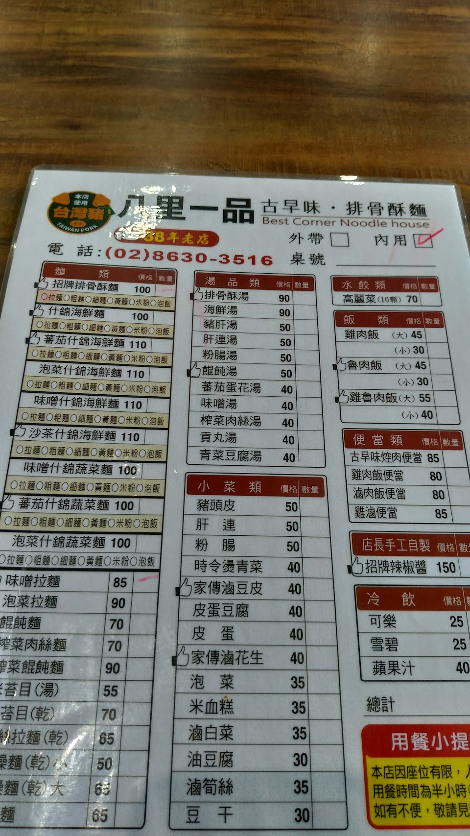 最後,八里一品排骨酥麵的價格也非常實惠。非常適合大眾消費。此外,店家還提供外帶服務,讓人們可以輕鬆地品嘗到這道美食。