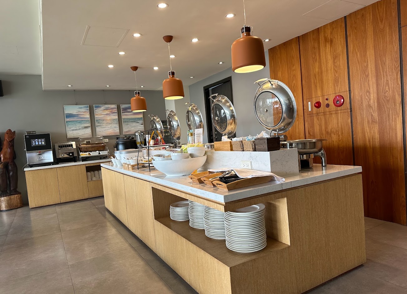 電梯蠻快的不用等太久,早餐品項不算多,可以選擇2個時段,但是中規中矩也是該有的都有了,能吃飽,餐盤要自己回收,補菜的人態度都很好。
