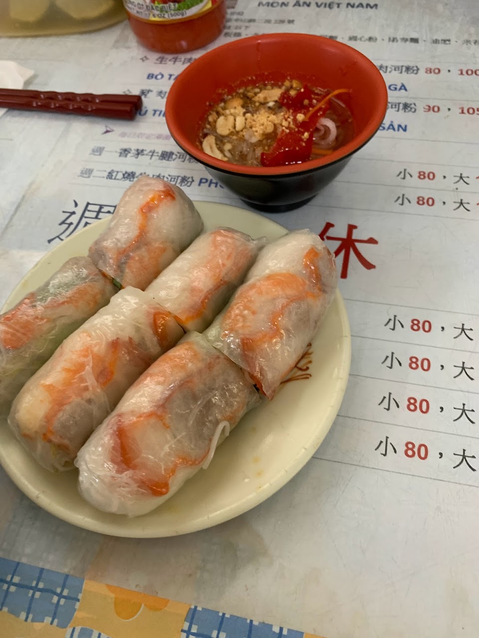 此次消費點了,牛肉湯(50)炸春捲(60)越南包(70)