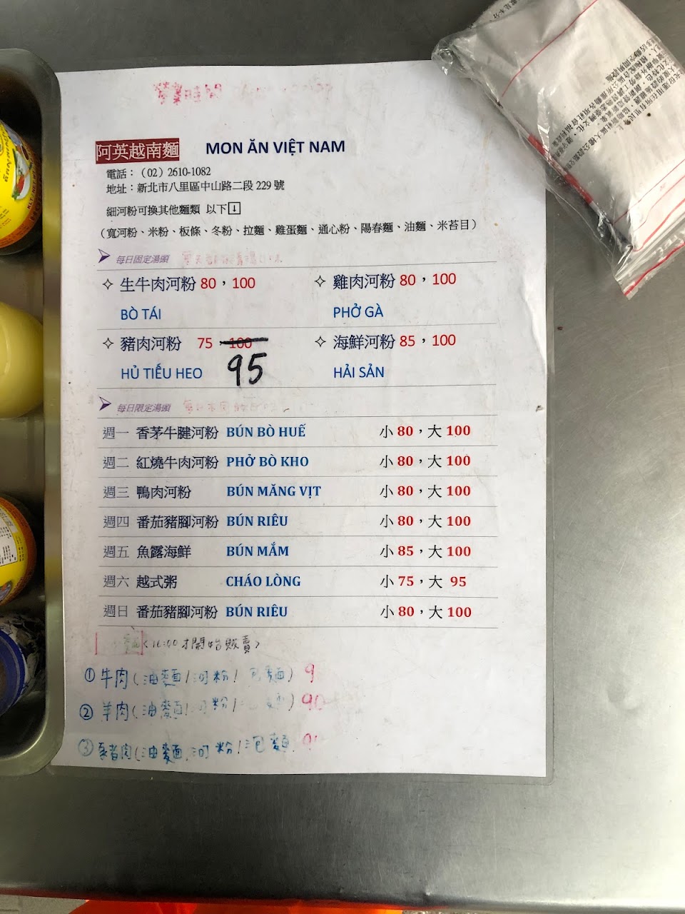 2024最新在地推薦餐廳的菜單_八里阿英傳統越南麵的菜單、圖片