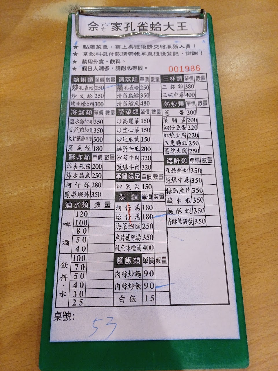 距離上次吃這家應該有十年了,當初帶妹仔來吃,心情大好,孔雀蛤吃起來格外好吃;事隔十年再吃,當初的妹仔變成老婆,身邊多了兩個拖油瓶,孔雀蛤吃起來好像沒有當初這麼好吃(大誤)