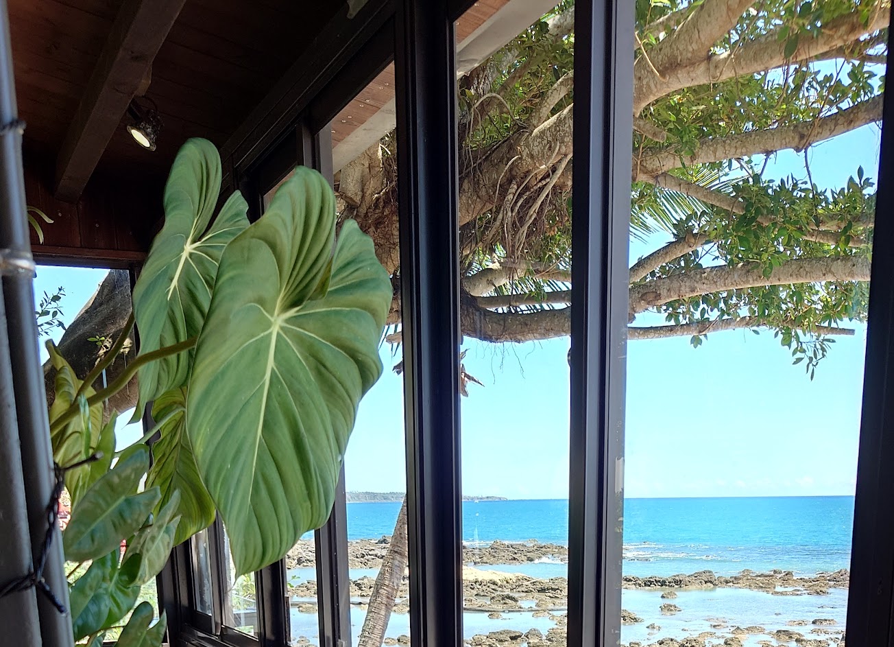 有冷氣的室內海景咖啡廳,累了這是一個不錯的休息站。芝麻香蕉蔬果綠拿鐵好喝有營養,大推。