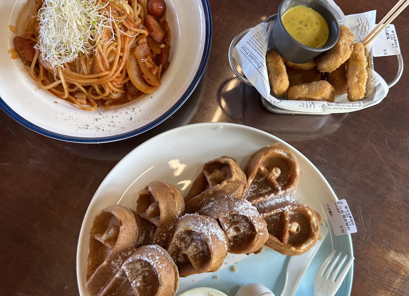 食物部分還不錯,點了紅烏龍蜂蜜鬆餅還有蒜香板烤雞胸肉