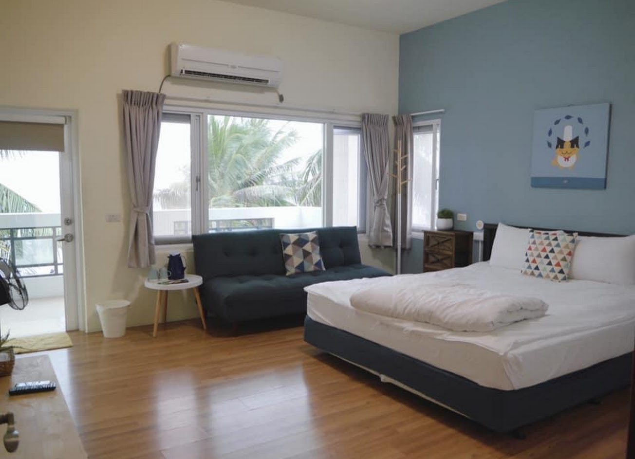 民宿價格合理 提供的早餐菜色豐富 吃早餐時會有2隻可愛貓貓來討摸 4人房的陽台較小 2人房的陽台較大 窗外就是海景 天氣好時晚上看得到星空