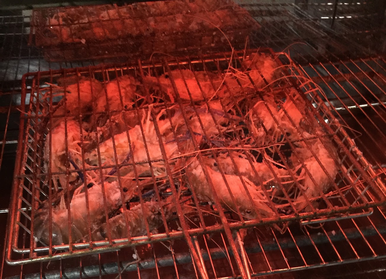 第一隻不敢拆鉤子請旁邊的幫忙拆,後來他們很好心送6隻蝦子?給我們兩個。