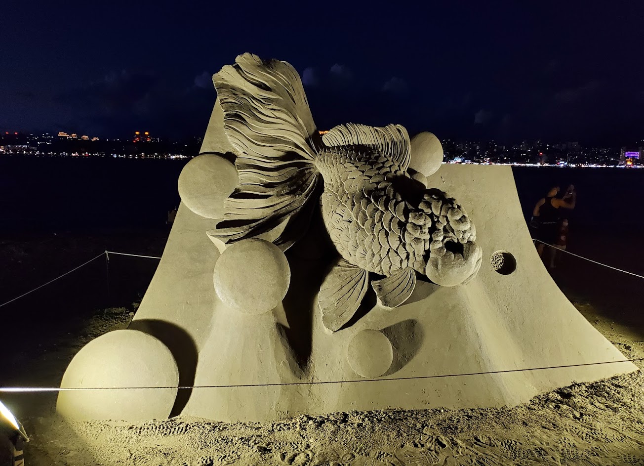 微風徐徐 美麗的夜景 還有沙雕光雕可以欣賞 八里沙雕 2020/8/16 – 10/19 2020主題:液態之愛 16座創作,全國首創 結合 #AR 擴增實境 還有美麗的風景 夜景 左岸還有許多好吃的餐廳
