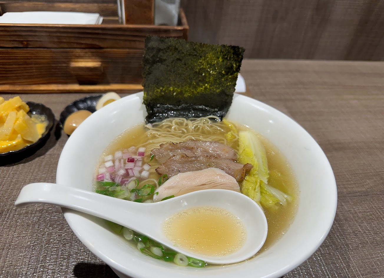 用餐時間112.04.09(日) 約18:00 抵達時店外有一組情侶在等候 體感等候時間約5分鐘 以週日的晚餐熱門時段稍嫌冷清,或大家吃比較晚也有可能。 接待女服務人員很親切 對於第一次用餐說明很清楚也很詳細?? 入座後約2分鐘餐點即上桌 本次點的是鹽味拉麵,加價立成製麵,是我喜歡的硬度,肉量加倍。 肉的部分有舒肥雞肉以及炙燒叉燒 雞肉軟嫩好吃,叉燒的形式是我第一次吃到的,跟我經驗中圓圓的叉燒不太一樣,比較像是肉片,炙燒香氣很棒。 另外還有四分之一的娃娃菜,湯裡除了蔥之外令我比較意外的是還有生洋蔥碎末,不過並不嗆口,怕洋蔥的人可能要留意一下。 整體算好吃,用餐體驗也不錯。 用餐到三分之二時不知道為什麼突然有一種在吃陽春麵感覺? – 會想再次用餐 也會推薦朋友用餐 接待人員很有熱情 – 補充:可能因為蛋荒的關係,不提供加點糖心蛋。(可惜但可理解) 服務 內用 餐點類型 晚餐 平均每人消費金額 $200-400 建議的餐點 Shio Ramen Salt Flavor Ramen