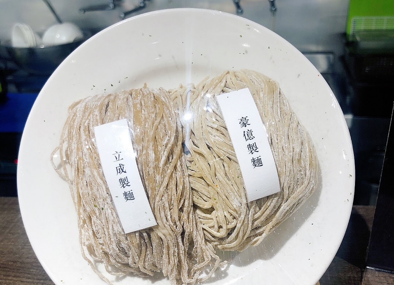 *豪億麵廠:偏向平時吃得臺灣白細麵的口感,較為軟嫩。 *立成製麵:偏向日本吃得Q彈有嚼勁。
