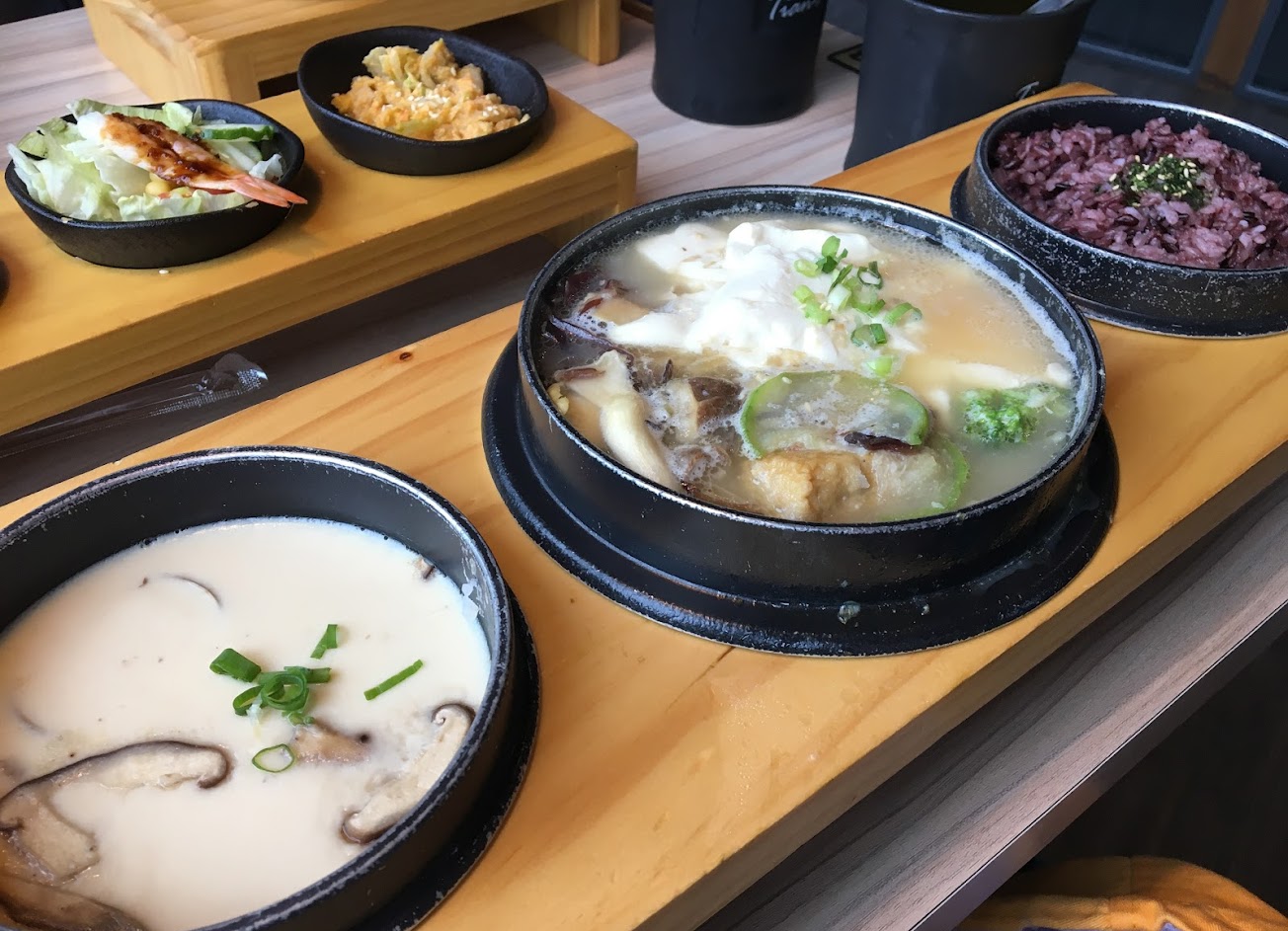 餐點:泡菜豆腐鍋+豚骨牛肉細麵(套餐升級+溏心蛋)$460,(豚骨細麵)…雖不滿意,尚可接受,(泡菜鍋)…湯頭過甜,且高湯味(有種像割烹加太多的感覺,)太重,搶了泡菜味,配菜~蒸蛋(嗯…有點水,蛋味不見了,少了Q性,註:個人徧愛口感)。店內環境還不錯。