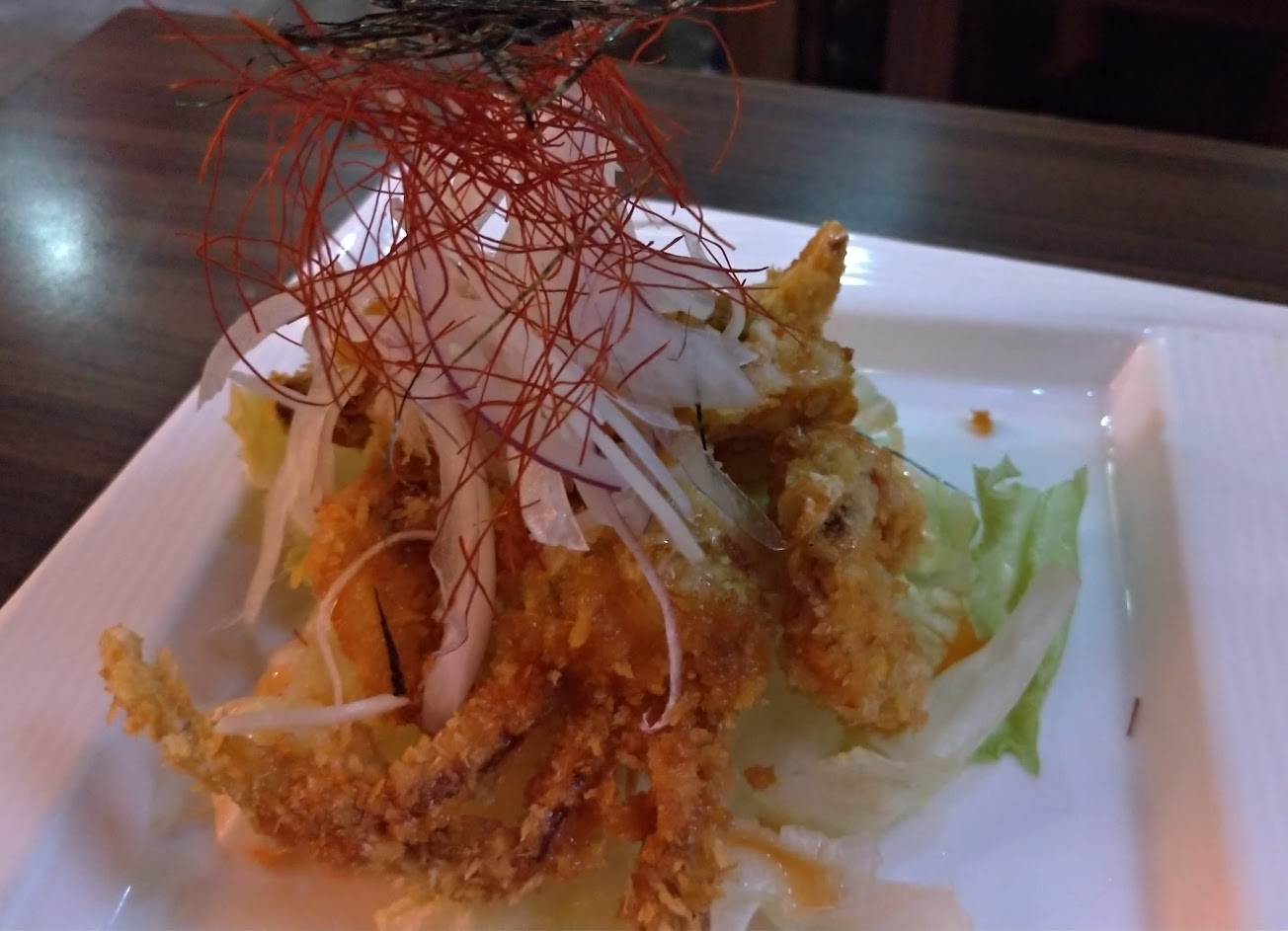 當天不是在計畫中來到大園日本料理,先前來過幾次,就覺得一般般,可以選擇的菜式很多而已;今天雖然點單內容只有幾道,實在是食量太小,有些遺憾未能多品嚐幾道菜色。泡菜炒松阪豬肉,份量十足,價錢實在,泡菜清脆爽口帶有微微的蒜香味,有著些微油脂的松阪豬肉爽脆不膩口,搭配微辣的泡菜,非常值得推薦的一道菜;炸蝦蓋飯的炸蝦沒有太多的麵衣,麵衣酥脆不油膩,地瓜香甜鬆軟,搭配的白飯更是我愛的粒粒分明型;酥炸豆腐,如同菜名外酥內嫩,搭配的醬汁更是一絕啊!這天完全被有限的菜式驚艷,很值得再來品嚐其他餐點喔!
