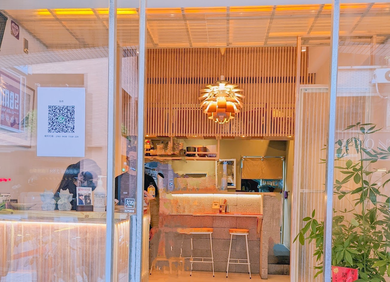 裝潢看起來很有質感,走經過會讓人想停下來了解這是什麼店。 試營運第一天就跑去吃了,在外面排隊時就被吧台前的燈給吸引住,好有質感的燈。連廁所都很大間、明亮,有分衛生紙跟擦手紙(加分!) 店內位子蠻多的,不過我去的時候吧台尚未開放用餐,加上吧台的話會有20幾個位子。 店內的燈光跟桌面的顏色讓人有點難拍照,顏色容易跑掉。 除了拉麵本體,其他都是同行朋友拍的,結果沒細拍到小菜。