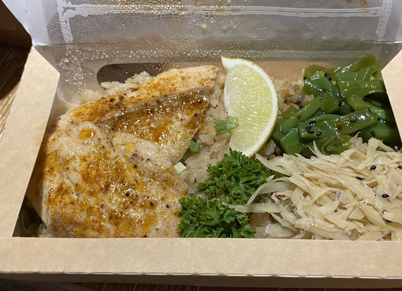 炊飯味道不錯,漢堡加了配料後蓋過魚味有點可惜,麻油魚湯很樸實的麻油味,鬼頭刀無魚腥味