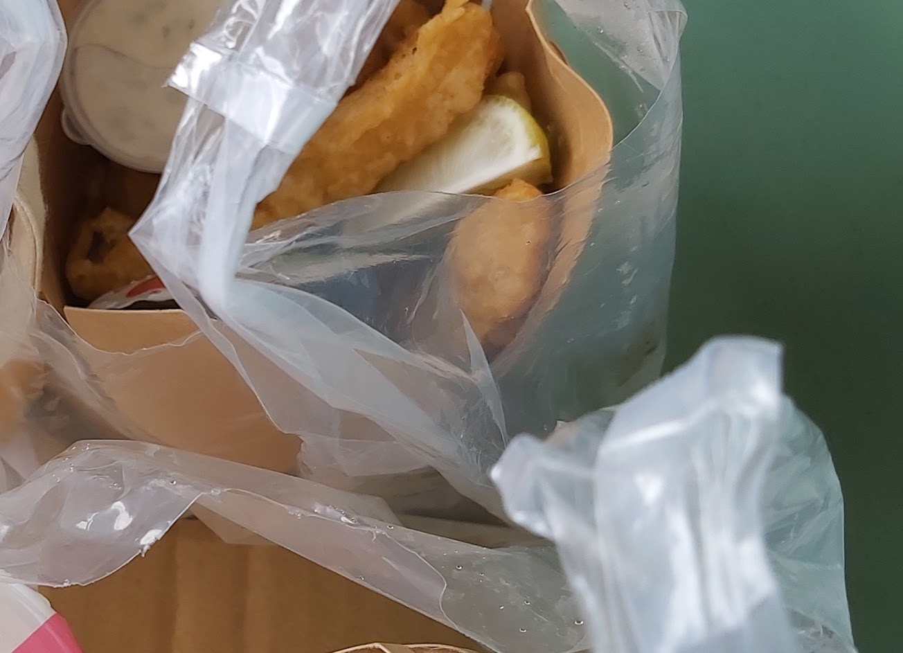 我們買了他們的炸魚餐點站在進門候位區吃還被店員驅離⋯⋯真的太好笑了…