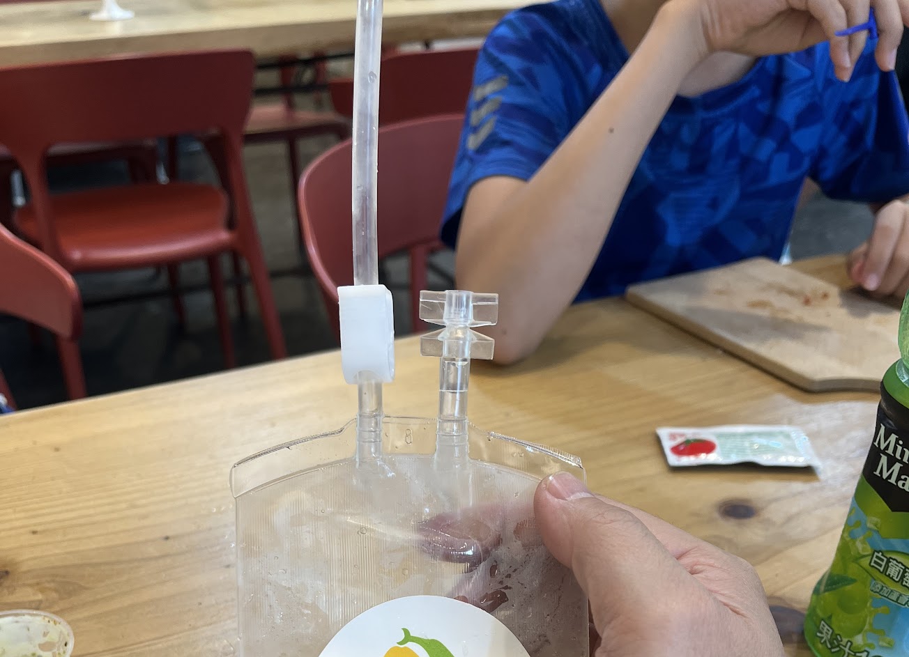 酥炸魚柳好吃!!檸檬蜂蜜血袋好喝又有趣!!