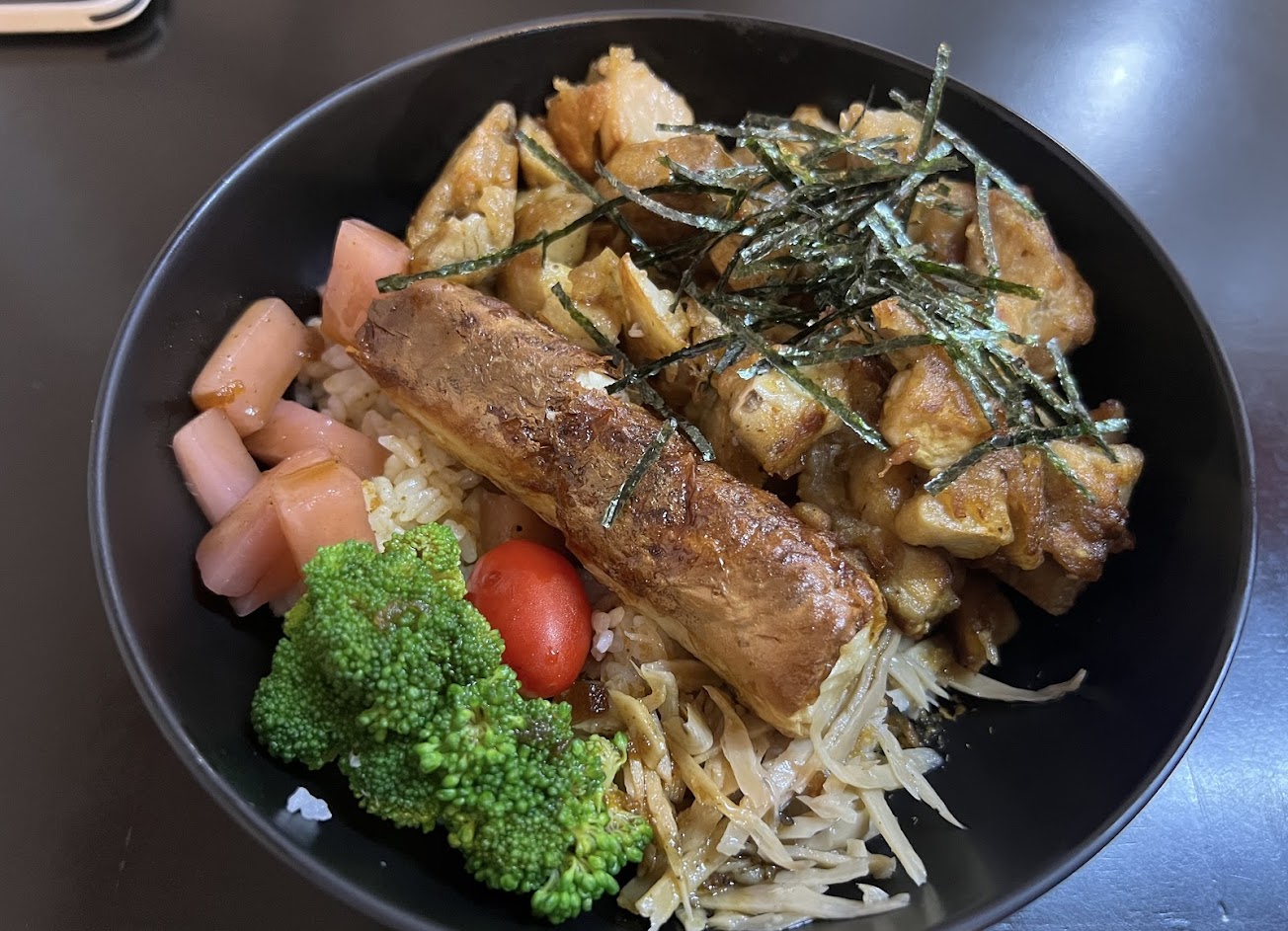 第一次來會以為沒有內用座位區,其實天之御草食內用區就在「福星計程車表」招牌屋內,今天點的是「將軍炒麵」「綜合丸子」。將軍炒麵是美奶滋與海苔的口味偏甜,一炒上來馬上熱熱吃很好吃。綜合丸子長相都一樣,但吃起來像盲盒,口味很獨特。總之非常推薦素友來用餐。