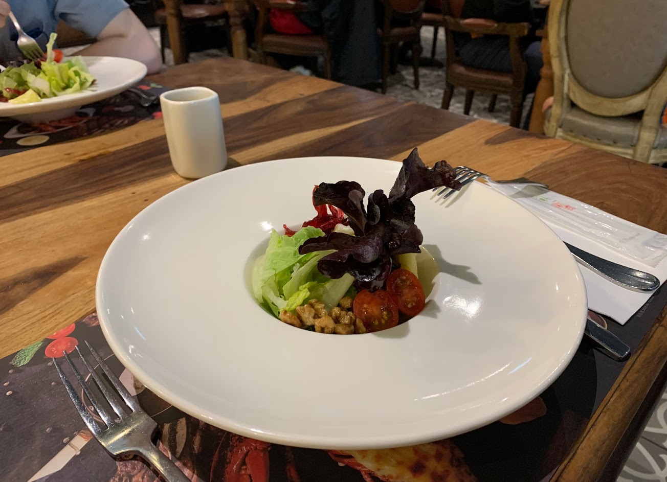 前菜、沙拉、麵包都很完美,義式番茄湯還好,主菜是蒜片紐約客,都是筋,很厚很難切⋯本來超級期待的⋯瞬間就不想吃了,媽媽很滿意她的牛小排,黑胡椒醬沒味道,座位偏擠,都可以聽到別桌聊天內容,記得先定位。