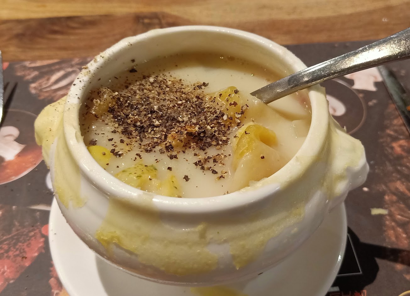 只有酥皮濃湯 還可以,沙拉蝦腸 黑黑一大條 感覺噁心,鐵盤不熱 完全不冒煙,價格高 CP值不高,絕對不會再回訪的店