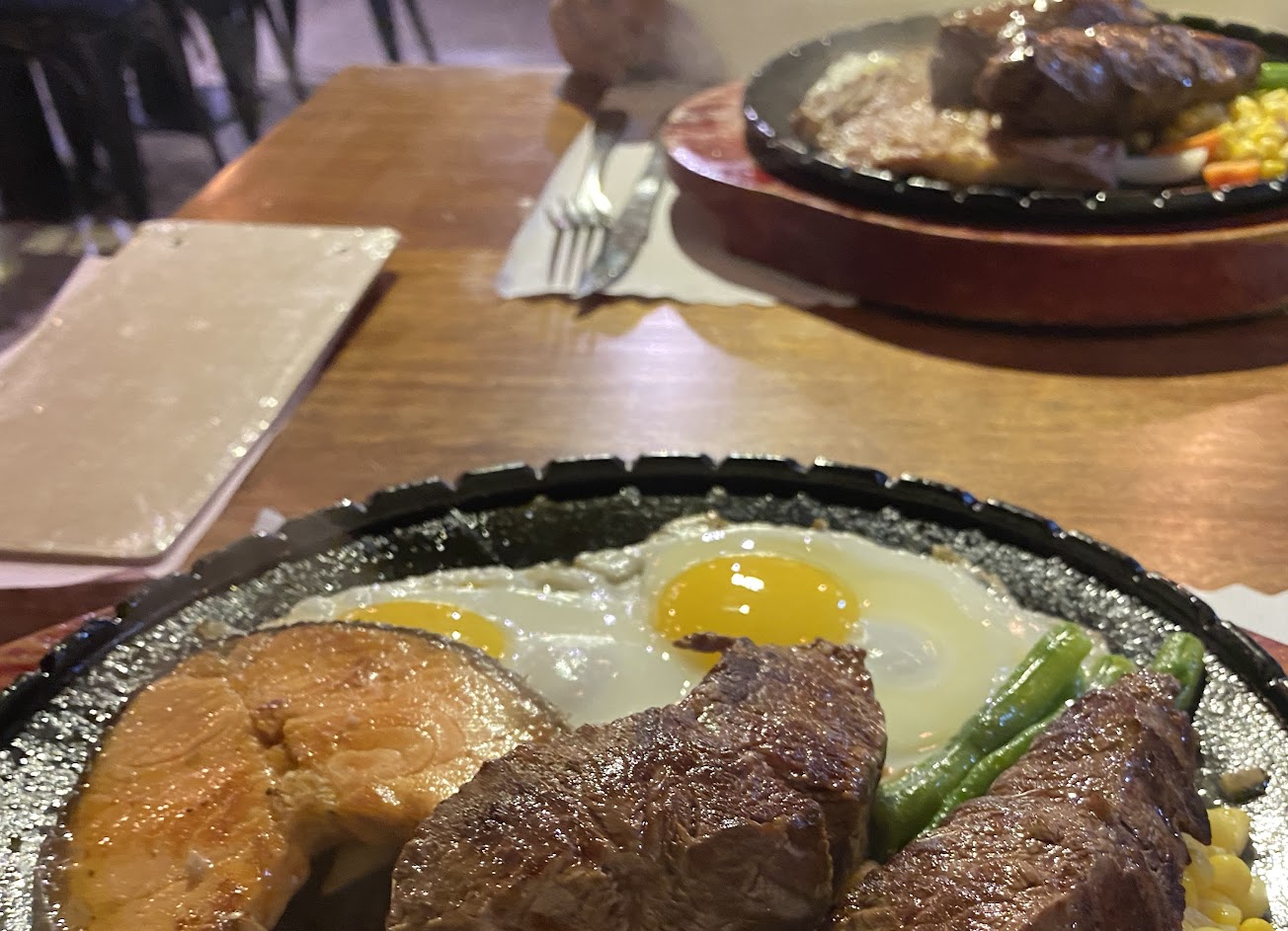 牛排店該有的牛排鮮味皆具備,7分熟尚可客製去筋的7oz特製牛排點單首選,鮭魚排大塊新鮮,酥皮海鮮濃湯份量足,芝麻奶酪甜點首選,整體而言算CP值高的排餐店。