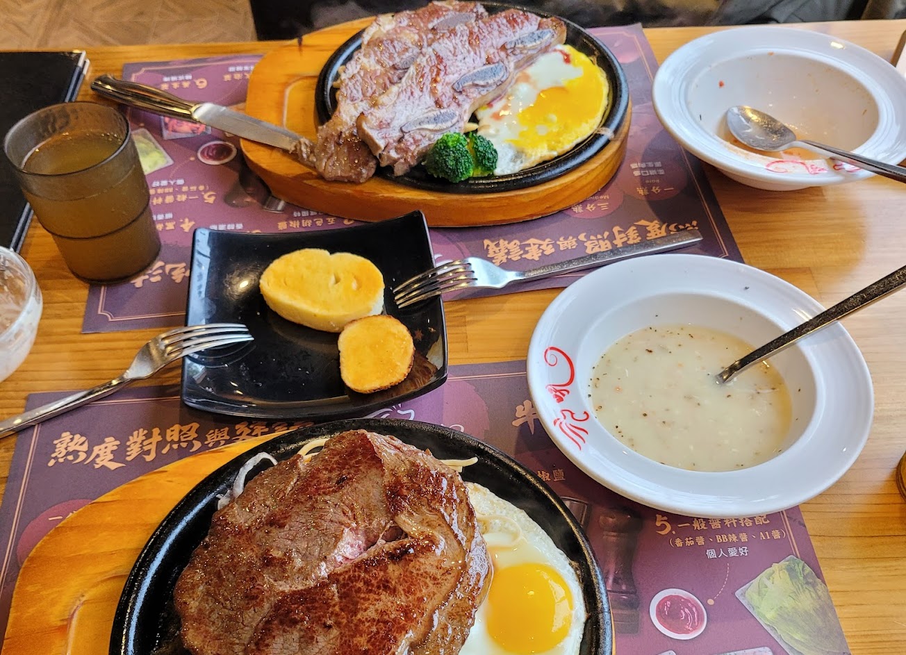 住附近而已可是第一次來嚐鮮,點了嫩肩三分和五分,但稍微過熟了,鐵板出來也不熱,濃湯也偏水和清淡。環境和其它點心飲料還不錯!重點裡面人員服務很親切,用餐完還會詢問客人餐點如何,聽取意見也會提議我們其它選擇,態度很誠懇?值得再光顧!