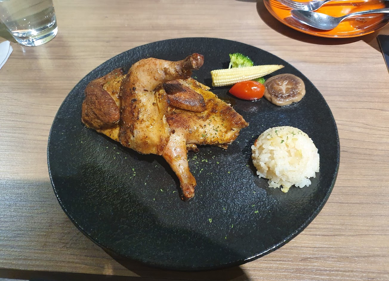 餐點選了烤雞、豬肋排,都有水準,