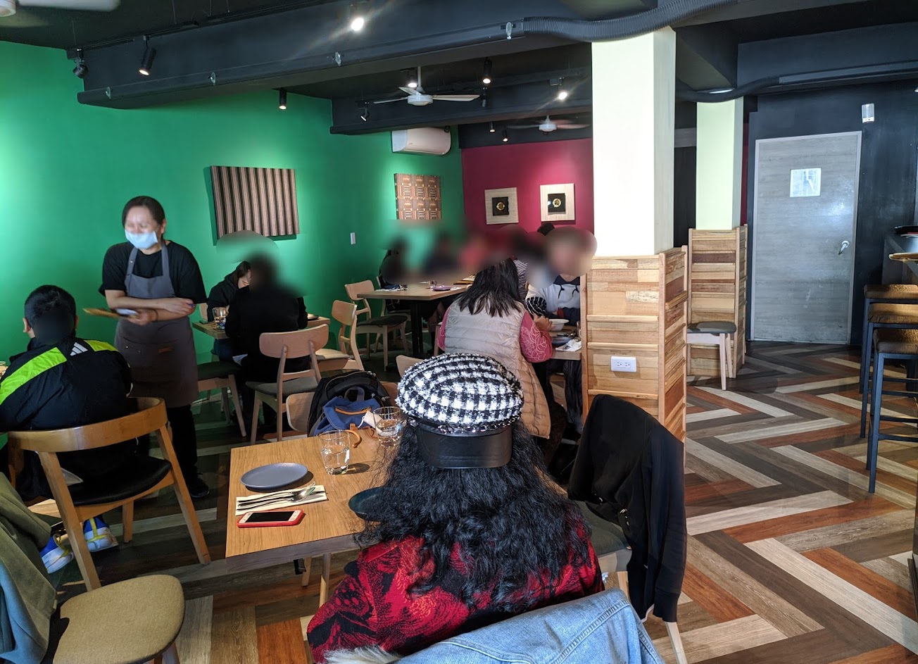 主餐好吃,但不知道副餐送來的麵包芋頭抹醬含肉,如果一開始有解說或提供其他不吃肉的沾料會更好,店裡氣氛配色都不錯,市區好停車,消費有含一成服務費。