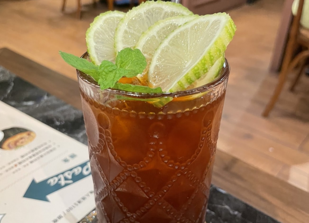 主廚例湯比較不合我的口味,覺得很淡很水,但同行家人覺得不錯,麵包部分不錯,沾醬也算中等,不是特別喜歡,凍檸茶覺得很有水準,喝過訪間太多凍檸茶都是檸檬味跟茶味的分離,但這邊不會,彼此有融合,相當好喝,泰式奶茶表現普通,最想誇獎的則是主廚奶油南瓜燉飯,個人喜歡米心稍硬的口感,料理上來也的確是稍硬的口感,奶油燉飯搭配微微天然甜的南瓜,一口送入嘴中得衝擊真的非常棒,後面來的墨魚鑲飯就顯得弱勢許多,加上飯體本身偏軟,墨魚香氣也沒帶出來,略顯可惜 ,甜點部分焦糖咻咻表現驚艷!值得一嚐