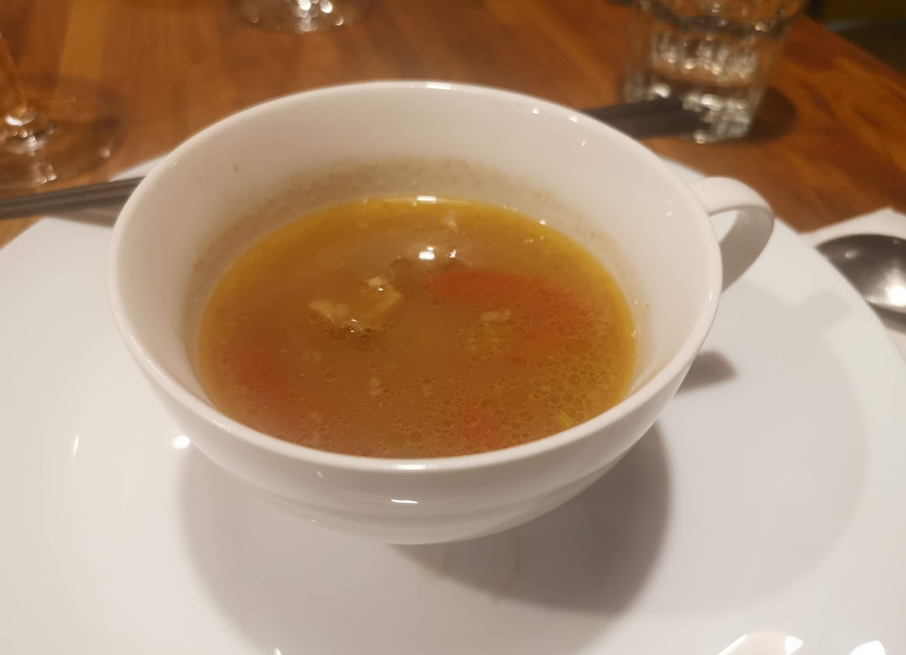 1. 先講餐點幾個大問題: – 第二道海鮮沙拉的軟絲(?)過熟、過鹹的柚子醬只剩滿滿的胡椒味,完全無法襯托海鮮的清甜。 – 第三道以鮮蝦為主體(搭自製青醬、酪梨、番茄和柚子)的前菜:兩隻蝦都煮過熟,肉老不好吃。 – 第四道燉飯完全沒有米心,飯的味道也不好吃,只有上面的配料還不錯。 – 第一道(濃湯)和最後的甜點(蛋糕+冰淇淋)都是中規中矩,不難吃也不好吃,大概五六百元連鎖西餐的表現。