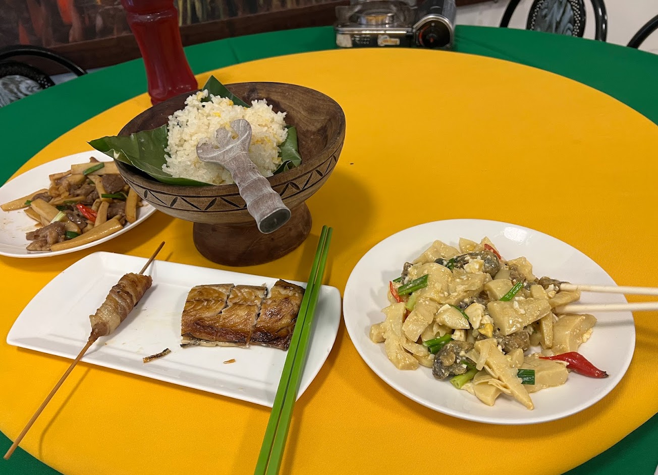 有幾道菜色很特別可以嘗試 山地飯+醃魚 烤春筍 麻燒雞 炸彈肉片湯 醃洛神花