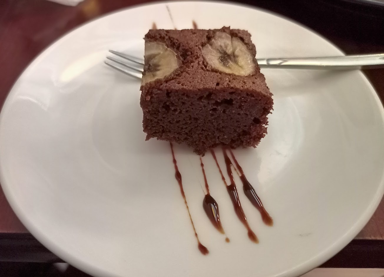 餐點不會油膩口味不錯,甜點的香蕉布朗尼不會太甜很讚??
