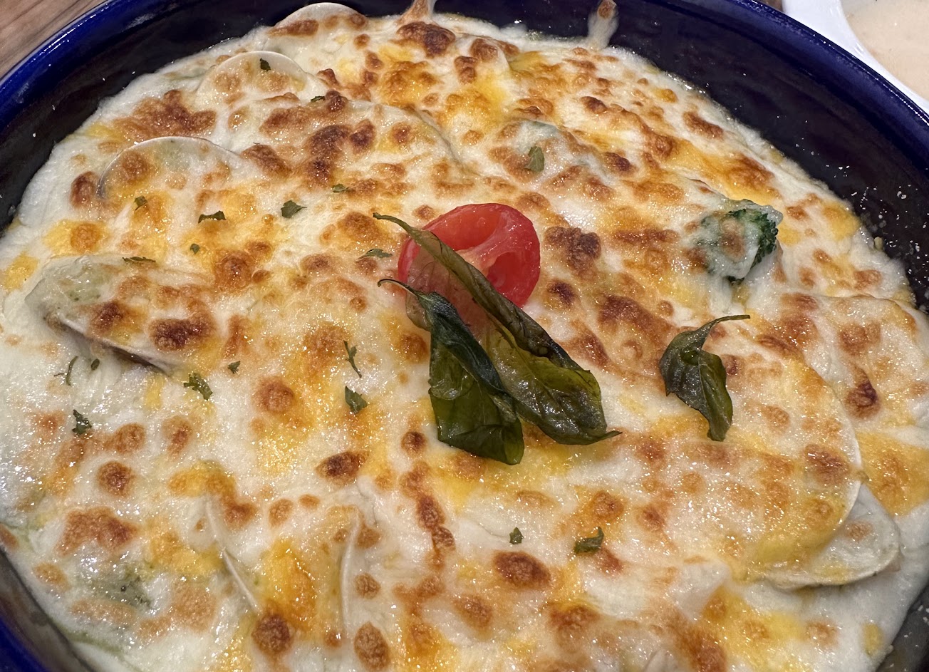 白醬培根義大利麵的部分也莫名其妙被加了焗烤 跟老闆說我們的麵沒有加焗烤 老闆說 沒關係加了就加了 (我OS:? 這不是價錢的問題 是我們的麵不想吃焗烤啊⋯⋯