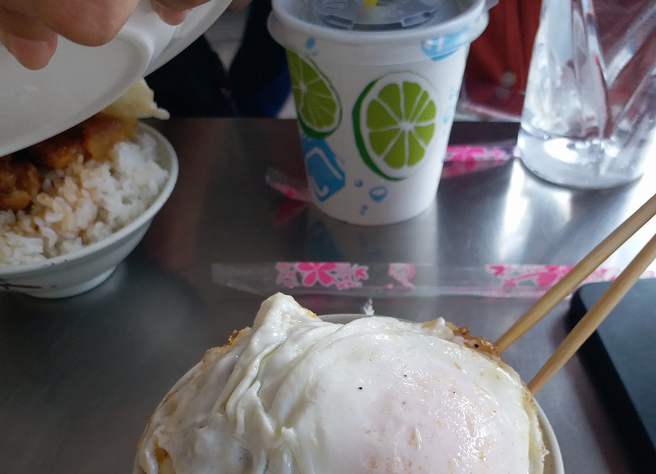 Loved it. Had the braised pork rice 滷肉飯, ham & cheese egg pancake 火腿加起士蛋餅, sunny side up eggs 荷包蛋, raddish cake 蘿蔔糕. Break the egg on the rice was glorious. The pork is nice and chunky.