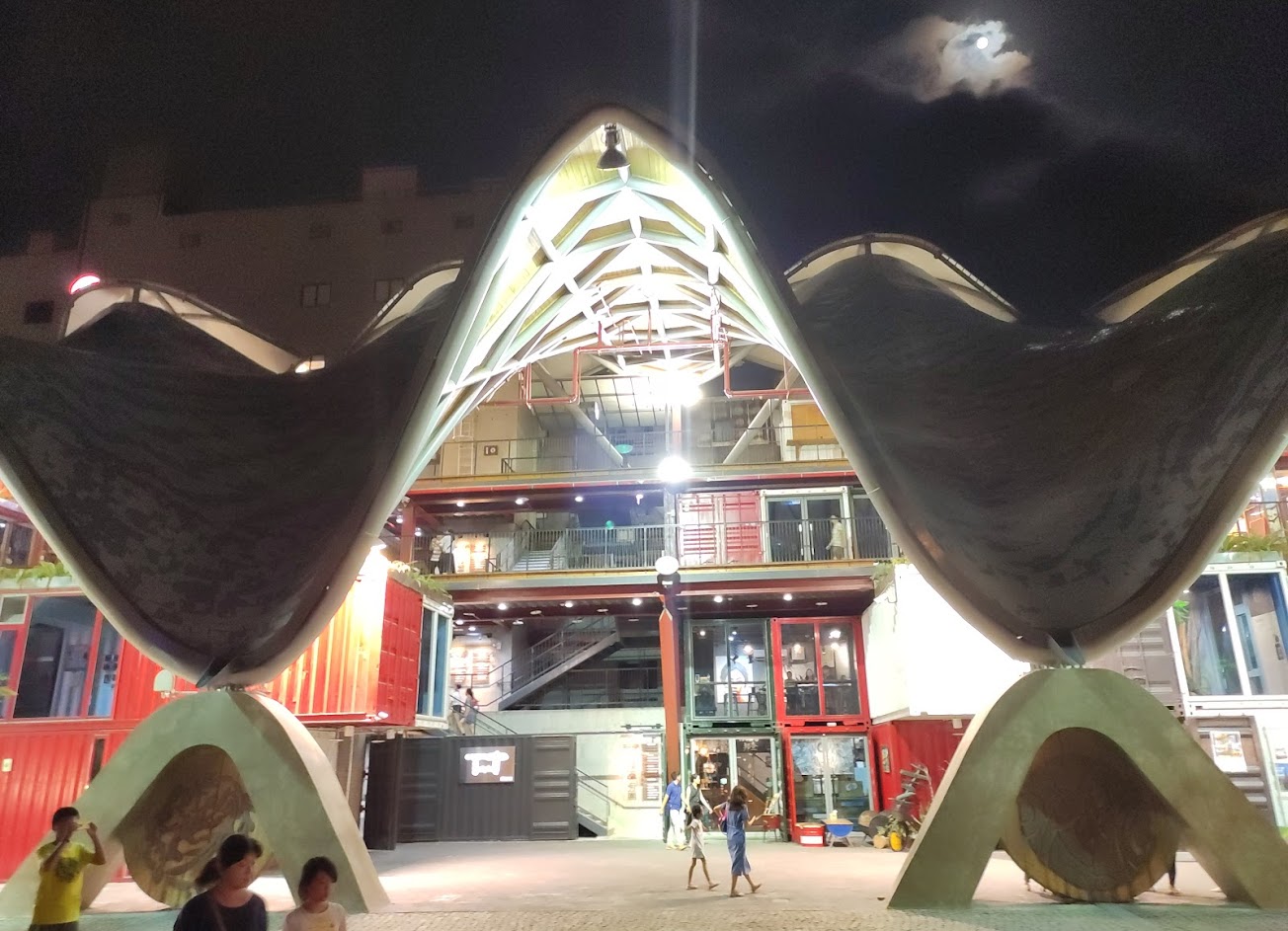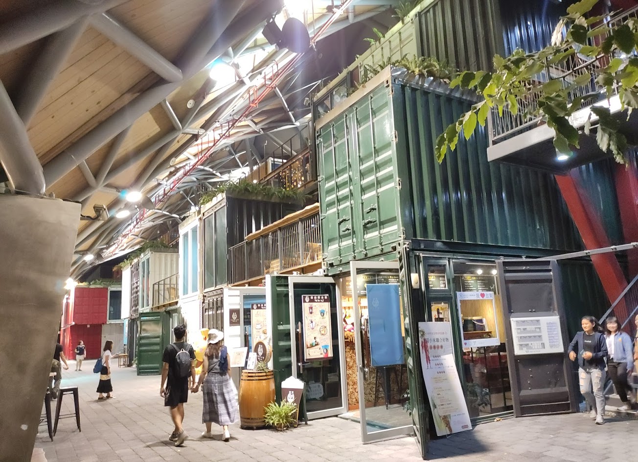 造型優美的貨櫃市集,夜晚配合鐵花村的音樂連成台東市最豐富的夜生活