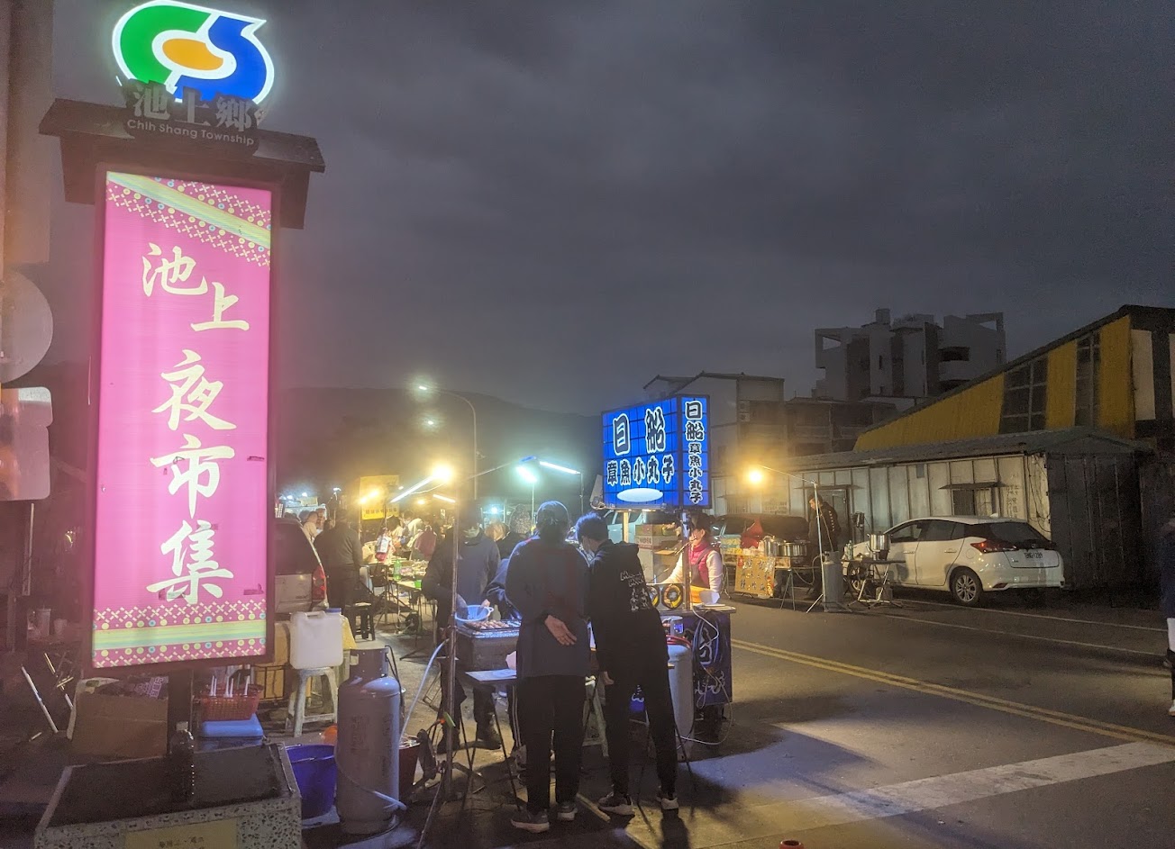 池上夜市不大,不過也還是可以選擇到自己想吃的東西,買了幾樣吃食回旅店開喝