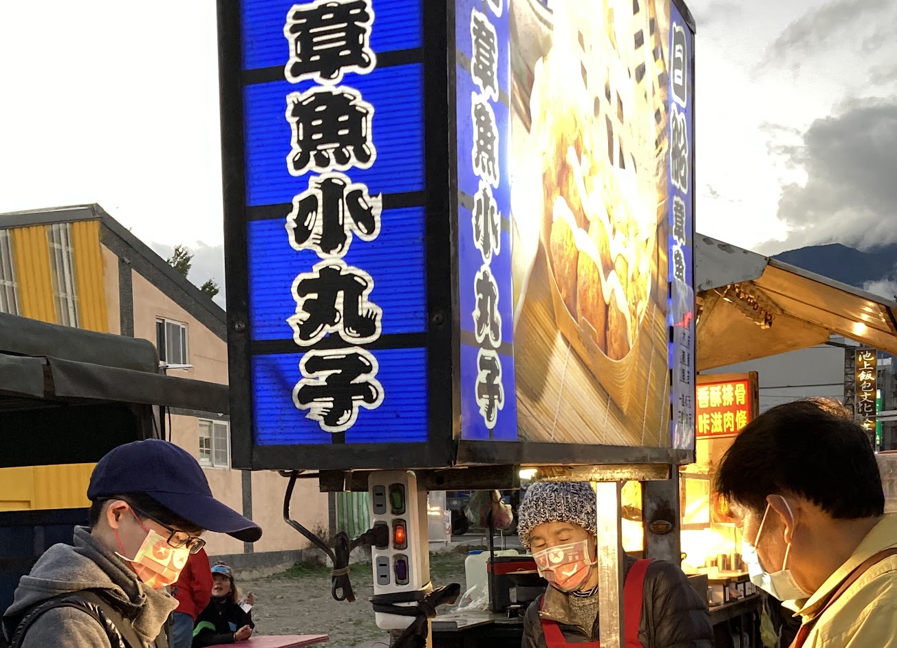 小巧的在地夜市,有賣麵包的,東山鴨頭,章魚燒,石板烤肉,水果,牛排,麻辣鴨血,甜甜圈,飲料攤,烤肉等等