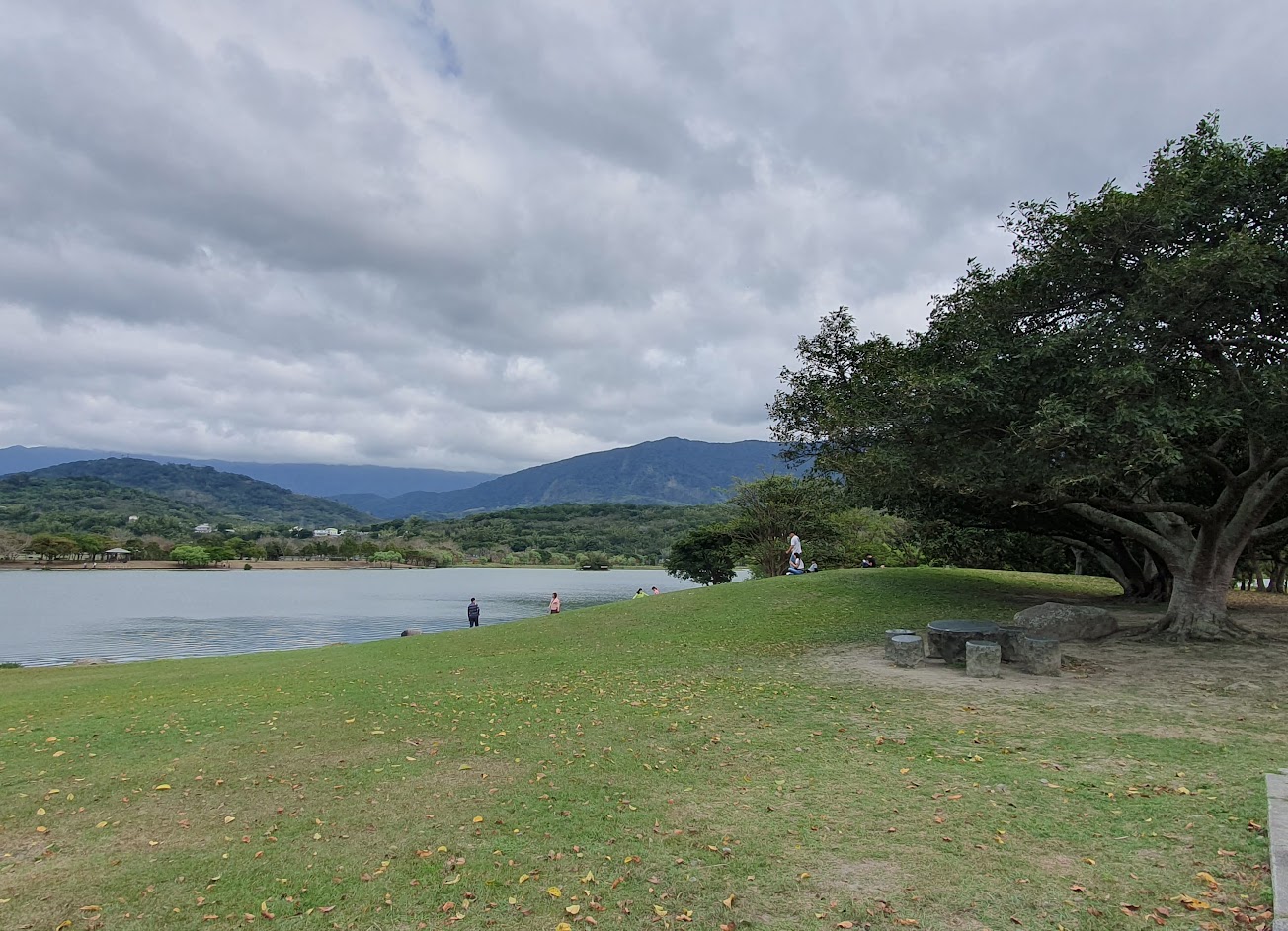 從金城武樹附近租電動車一路騎過來,湖畔風景很美,很多路沿途都有樹蔭,太陽不會直曬用走的也不會到很熱。有草皮可以野餐