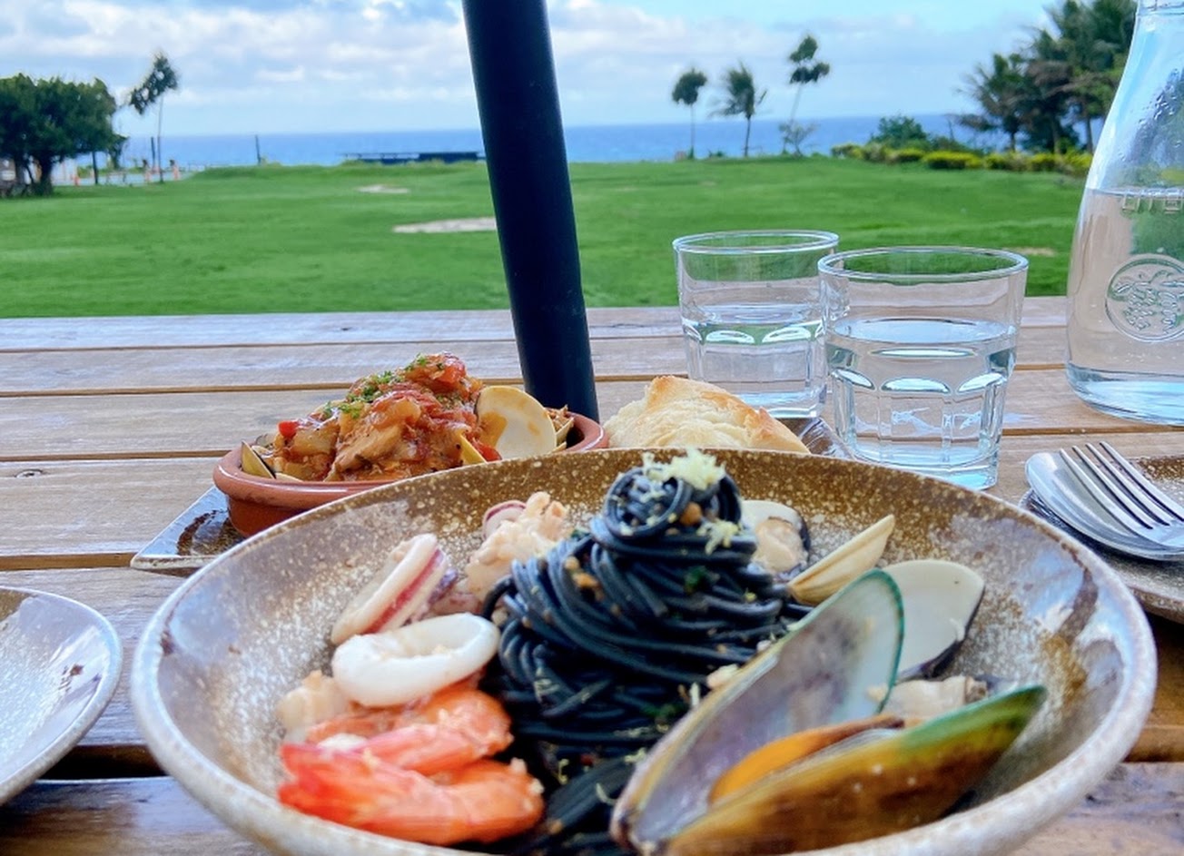 很棒的用餐地點,整片大海一覽無遺,餐點更不用說真的很好吃。我們點了海鮮燉飯,食材不只新鮮,製作時溫度也控制的剛好使得花枝很嫩很Q,蝦子也很甜。