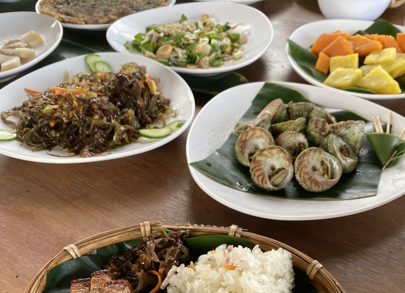原住民風味餐,需先預訂,這次是用賴預定的,用餐時間無限制,可以很悠閒輕鬆的享用,原本以為是合菜需要很多人一起吃,但散客也沒問題,一人350元,無菜單料理,菜色很多。 一開始老闆會介紹阿美族的用餐習慣,餐具跟環境很用原住民的氛圍,如果想要知道更多,老闆也會親切幽默的解說。 覺得特別的菜有醃生豬肉,但老闆怕我們不敢吃而有先川燙過,太可惜了,不然生的我也很想嘗試看看,還有山苦瓜跟鐘螺都是第一次吃,鐘螺很新鮮,白飯好像是糯米,很Q彈有嚼勁,另外有香蘭泡的熱茶,光是靠近就有濃郁的香氣。 雖然沒有室內,但吹著海風也頗為涼爽,吃完還能散散步拍拍照喔!