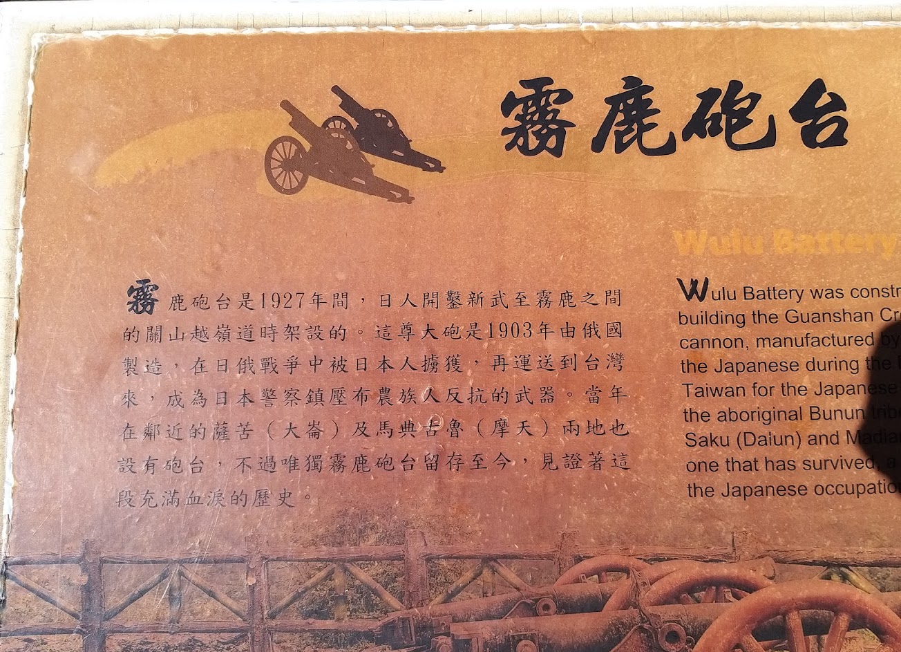 日軍將日俄戰爭拿來的戰利品架在霧鹿部落的至高點,用來嚇阻當地的布農族人,讓他們不敢反抗。