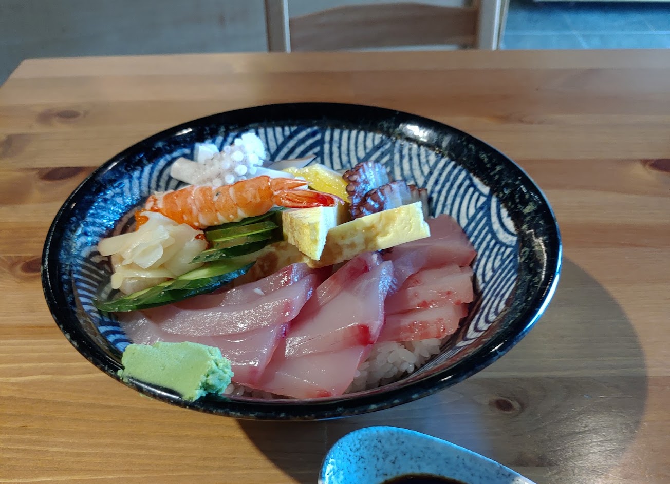 老闆每天早上都會去漁港批貨,每一口吃到都是最新鮮的食材,也因為這樣海鮮丼飯上面的生魚片,每天的魚貨都不一樣,讓人有充滿驚喜的感覺
