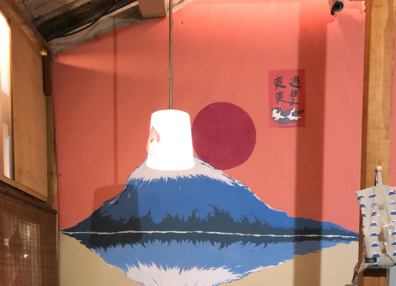 店裡裝潢濃濃日本味 手繪富士山牆真的好可愛