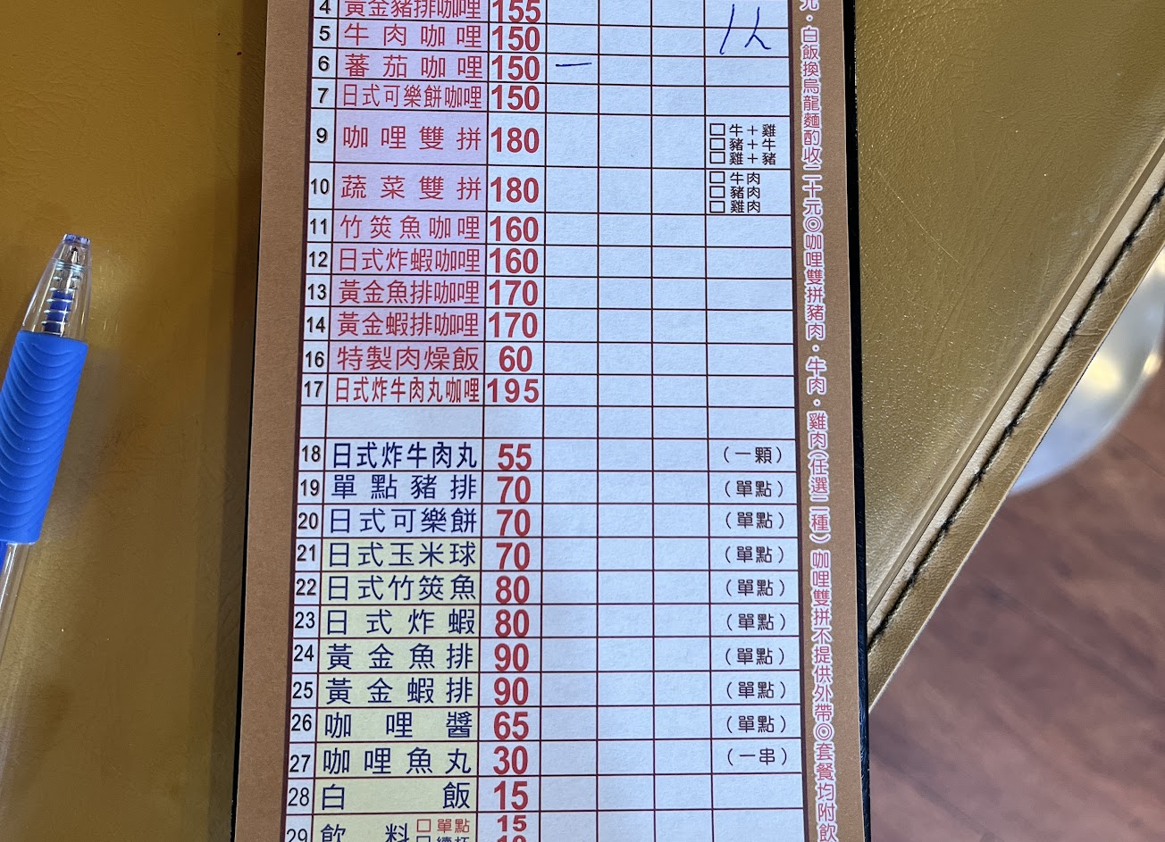 便宜好吃?出餐速度快 咖喱裡面有一個小小紅紅很好吃的 不知道是什麼 服務 內用 餐點類型 晚餐 平均每人消費金額 $200-400 餐點:5 服務:5 氣氛:5 建議的餐點 黃金豬排咖哩加起司