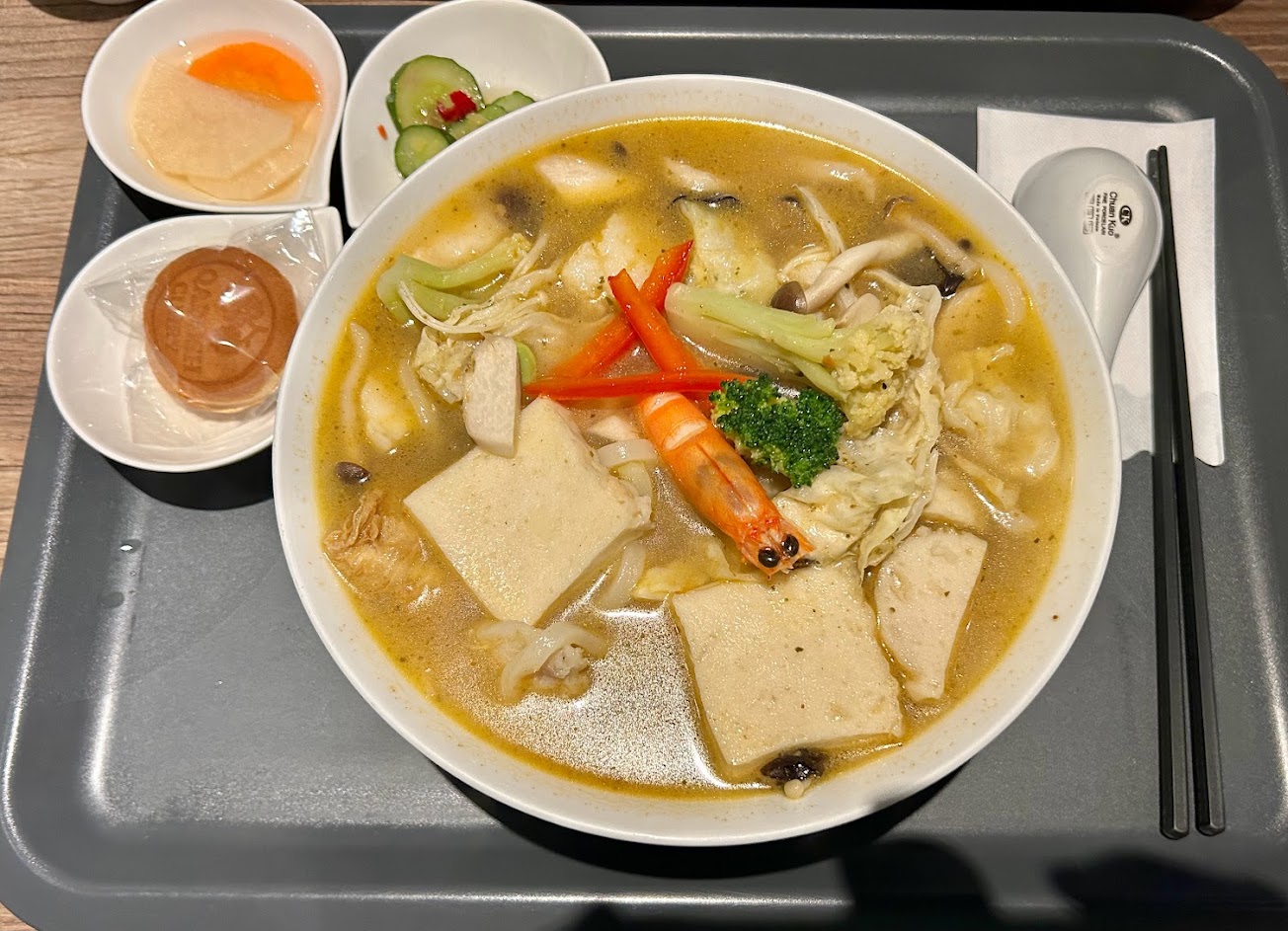 叻沙海鮮麵,湯濃麵Q 海鮮配料豐富;